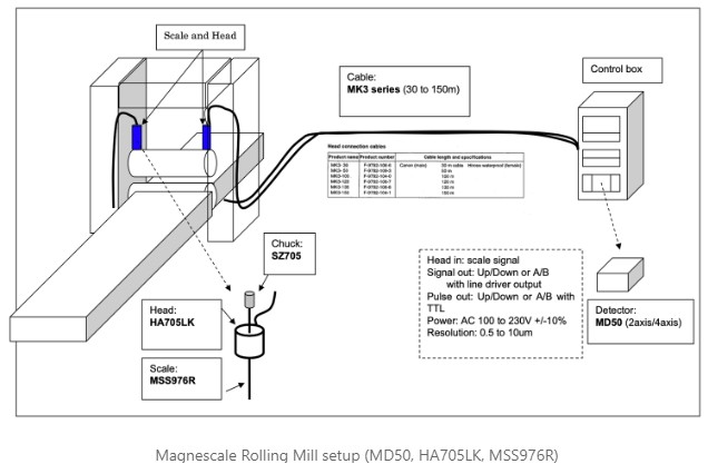 Rolling mills rely on accurate position feedback to control roll gaps, monitor material thickness, and ensure consistent product quality. The Magnescale system provides: