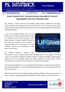 Formed in 1988, Prospec Systems Limited (PSL) is the market leading author and supplier of PSL Datatrack, a flexible, modular production control software system for subcontract precision engineers.